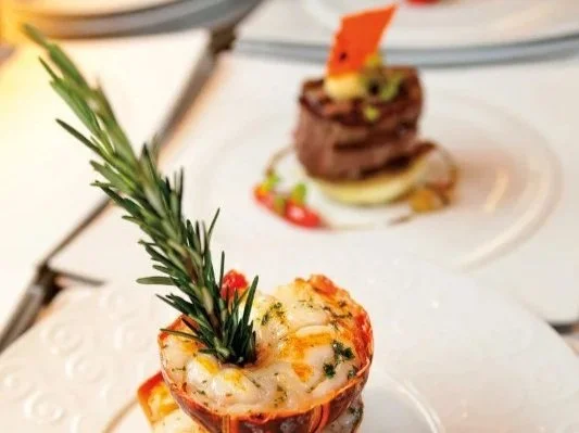 The Platinum Restaurant and the Golden Restaurant serve as the main dining rooms on Carnival Glory. These venues share the same rotating menus and are open daily for breakfast, sea day brunch, and dinner. Guests may choose early or late assigned seating, or select Anytime Dining based on availability. The menus include a range of appetizers, entrees, and desserts that change nightly.