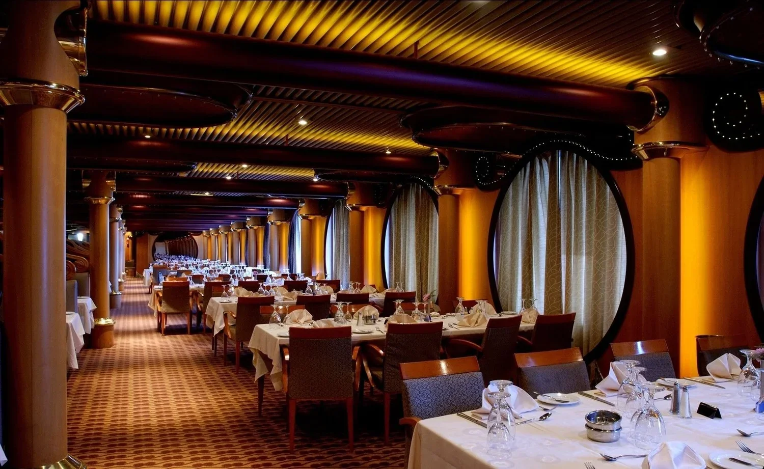The Destiny Restaurant and Elation Restaurant serve as the main dining rooms on Carnival Paradise. These two dining rooms feature the same rotating Carnival Cruise Line menus and are open for breakfast, sea day brunch, and dinner. Guests can select early dining, late dining, or Anytime Dining based on their preference.