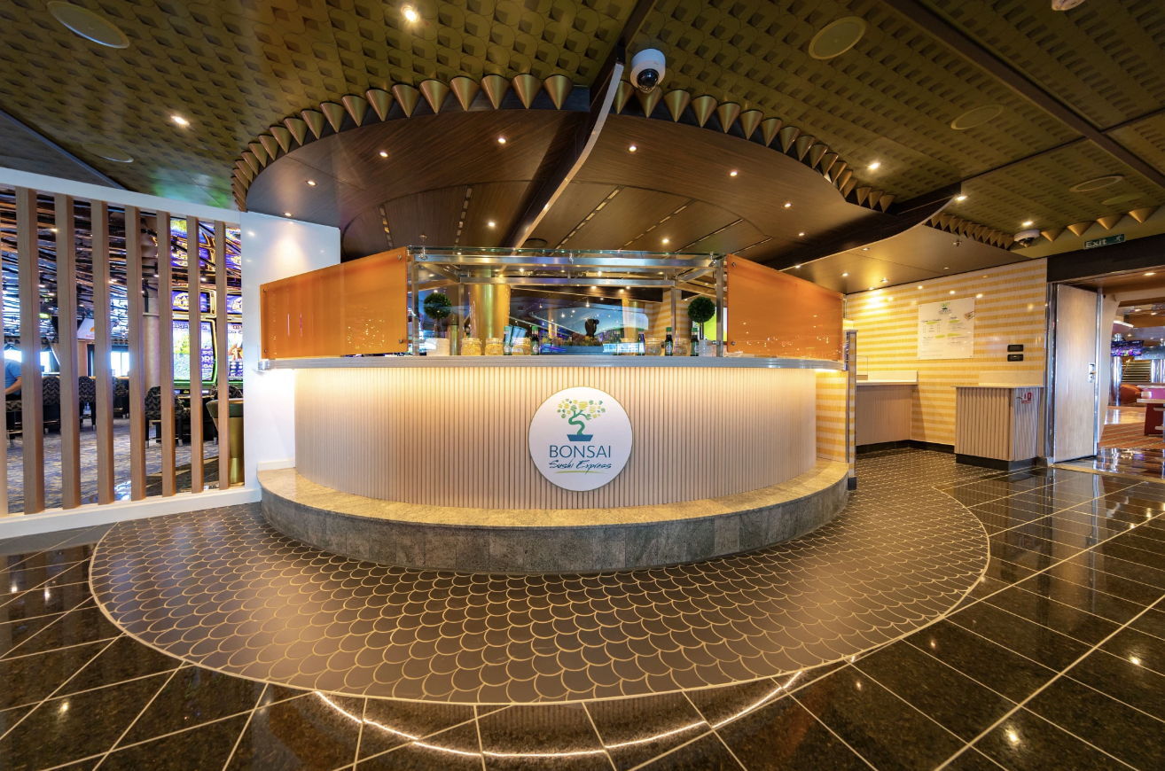 Bonsai Sushi Express provides freshly prepared sushi, sashimi, and specialty rolls for an additional charge. Open for lunch on sea days and for dinner service, this venue prepares items to order and packages them for guests who want to dine in or take their meal to another area of the ship.