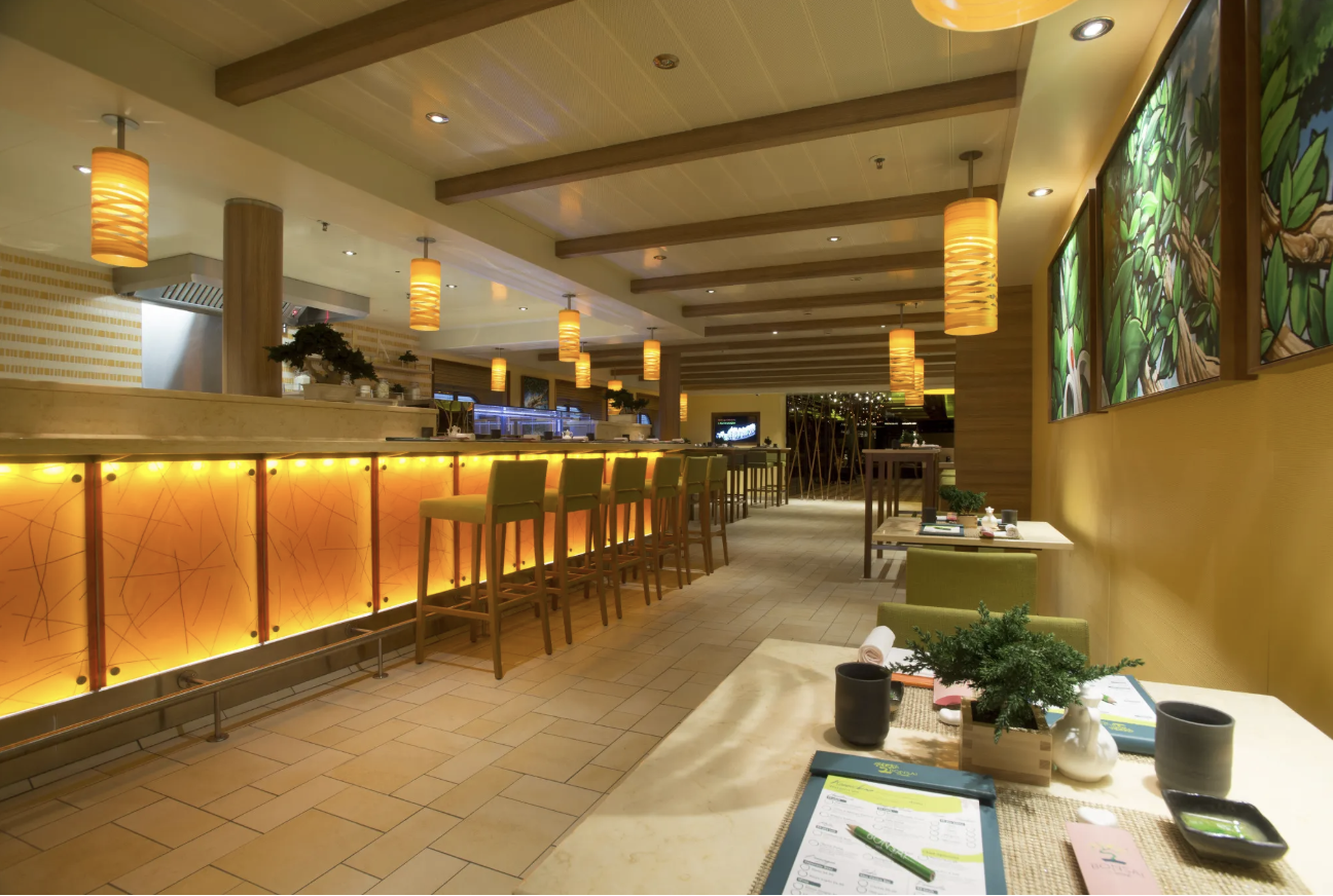 Bonsai Sushi provides an authentic Japanese dining experience with sushi, sashimi, and other Japanese dishes. Available for lunch on sea days and dinner every night, it is ideal for guests looking for an Asian-inspired dinner.