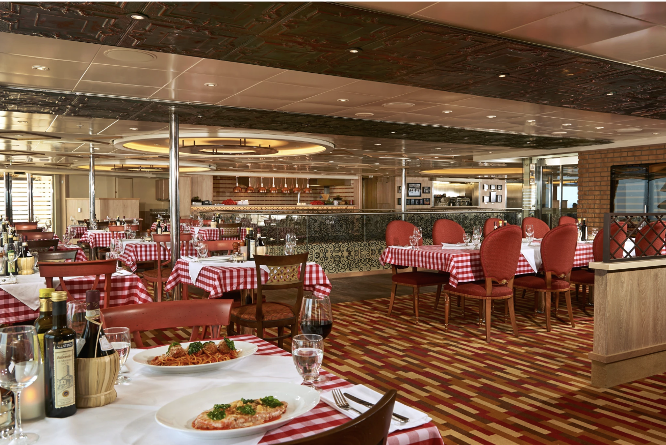Cucina del Capitano is the ship’s Italian specialty restaurant. The menu features classic Italian dishes served in a casual sit down setting. Dinner is available for a flat per person charge.