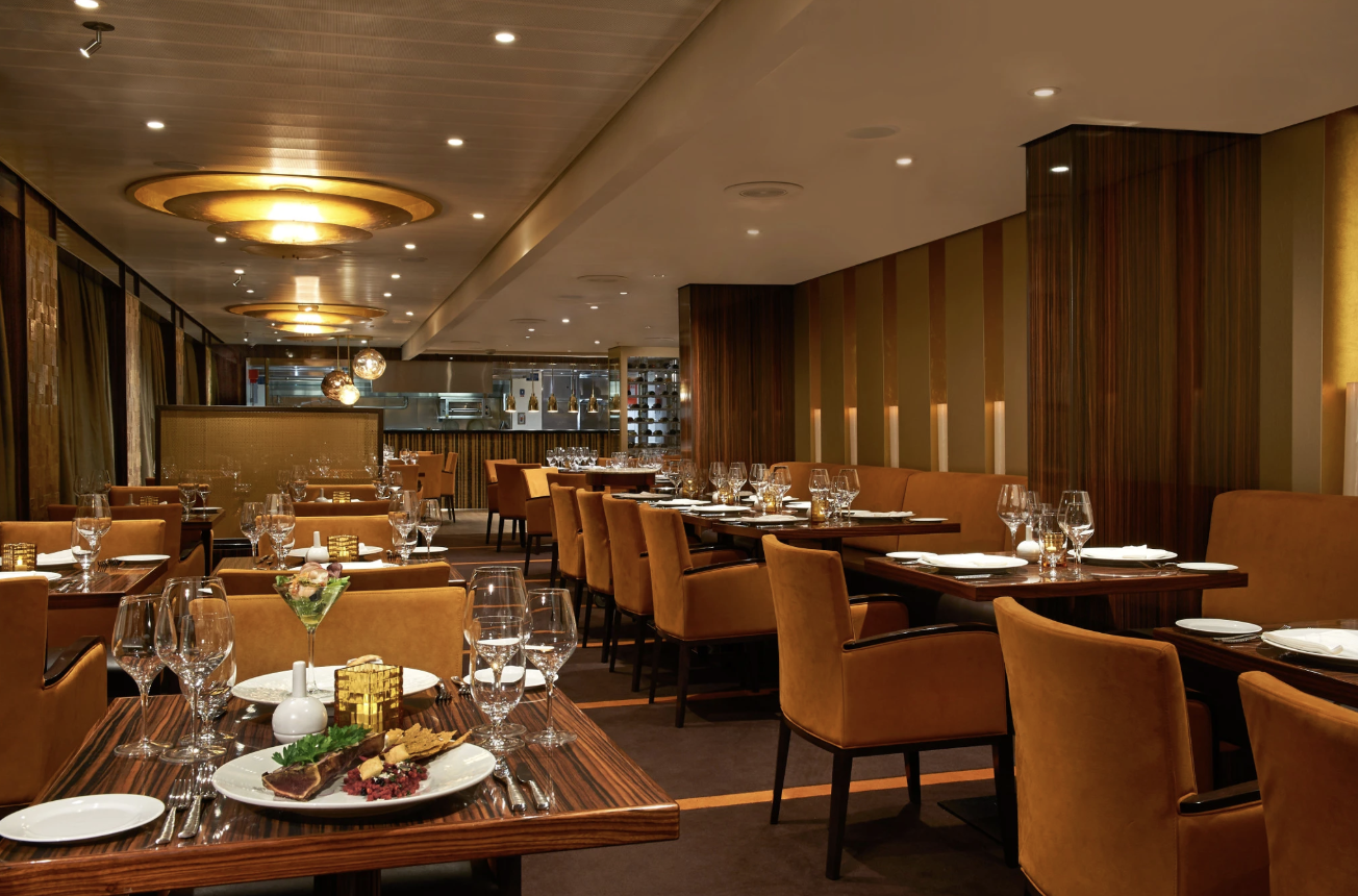 Fahrenheit 555 Steakhouse is the premium steakhouse on Carnival Sunshine. Guests can order steakhouse cuts of beef, seafood, and a selection of sides for a fixed cover charge. This restaurant is frequently searched by cruisers planning a formal night dinner.