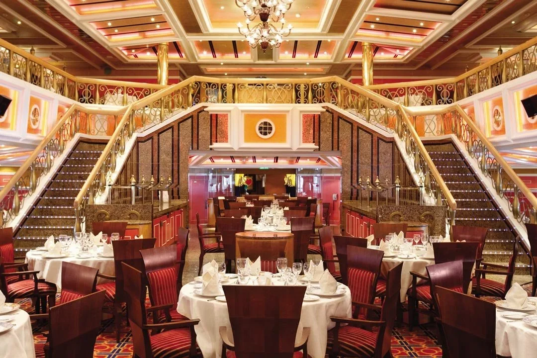 The Washington Restaurant and the Lincoln Restaurant serve as Carnival Valor’s main dining rooms. These two venues share the same rotating dinner menus and are open daily for breakfast, sea day brunch, and dinner service. Guests may select early or late assigned seating, or opt for Anytime Dining depending on availability.