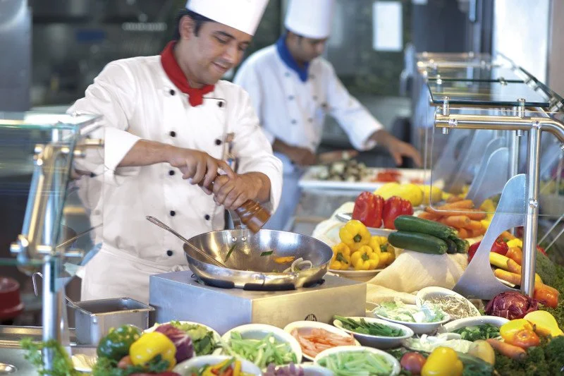 Mongolian Wok is open for lunch and allows guests to create their own stir fry bowls. Diners select noodles, vegetables, protein, and sauce before the dish is cooked to order. This complimentary option is known for its customizable combinations and quick service.