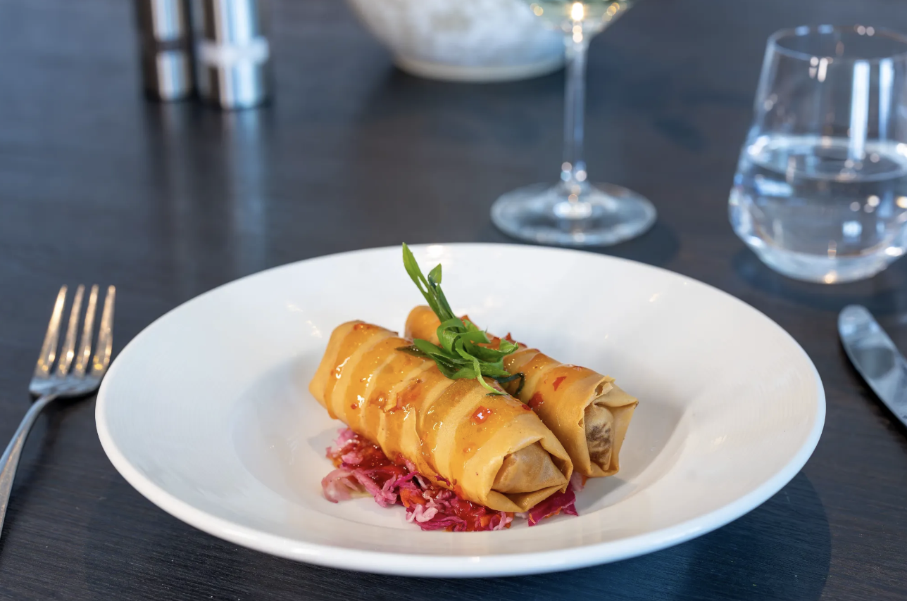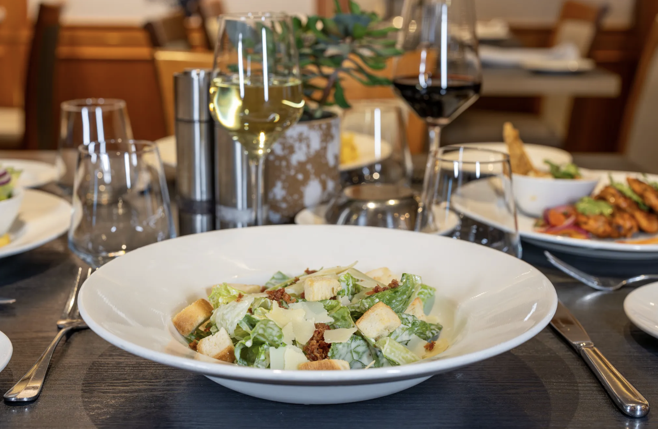 Main courses highlight the restaurant’s blend of international flavors. Guests may find arrabbiata pasta with tomato and garlic sauce, pan roasted salmon with coconut rice, butter chicken masala with basmati rice and roti, BBQ pork steak with mash and vegetables, grilled hake fillet with chips, and Mediterranean bowls with grilled chicken, pilaf, hummus, and salad. Comfort food favorites such as chunky steak and mushroom pie, slow braised beef brisket, Southern fried chicken, red wine beef cheeks, and fisherman’s pie are also featured on select evenings. Vegetarian options like Greek spinach pie, pumpkin enchiladas, and a featured Indian vegetarian platter are typically available as well.