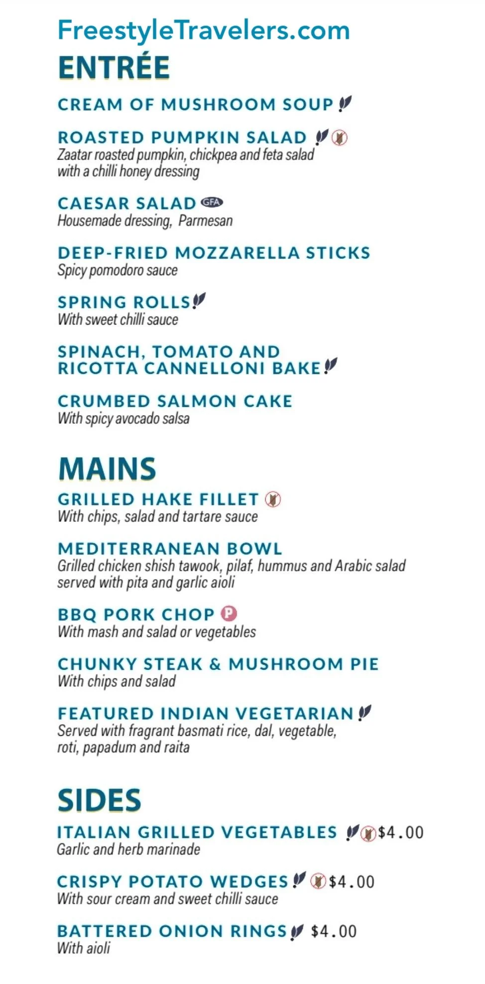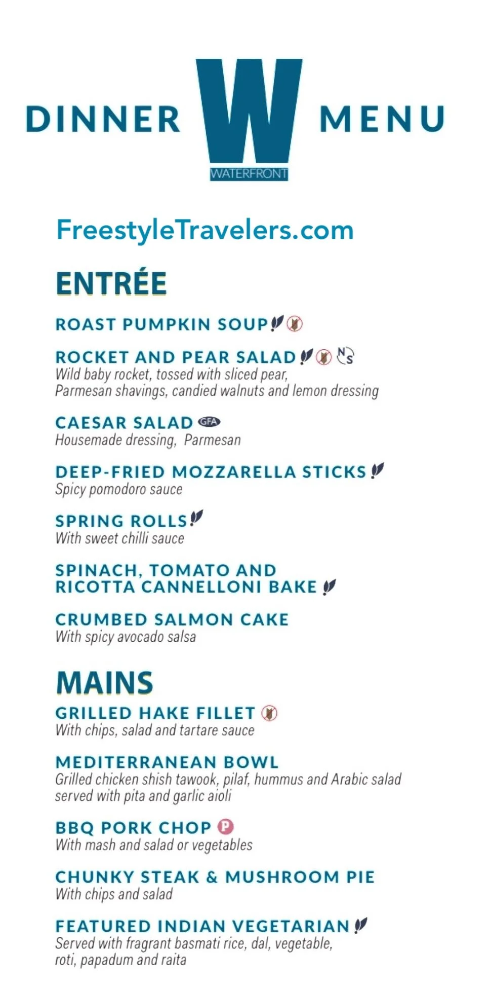 This venue offers seated service with wait staff and is complimentary for breakfast, lunch on sea days, and dinner. The menu is designed to appeal to a wide range of tastes, including family friendly options and a dedicated kids specials menu that changes daily. Because of its variety and relaxed atmosphere, Waterfront Restaurant is a central part of the onboard dining experience.