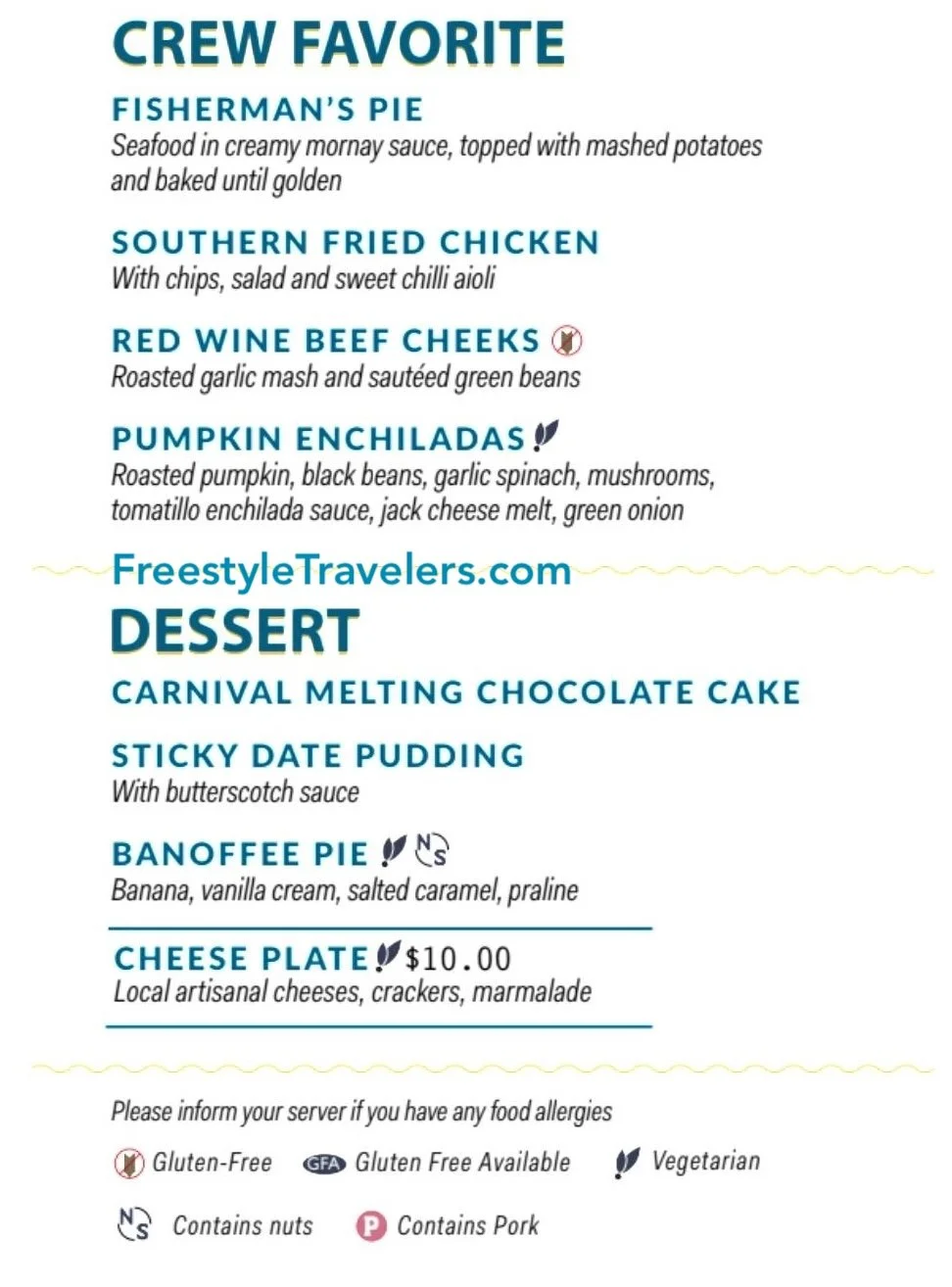 For guests searching for Waterfront Restaurant menus, Carnival Adventure main dining room details, or Carnival Encounter dinner options, this venue provides a reliable and included dining experience. From steak and seafood to vegetarian dishes and signature desserts, Waterfront Restaurant remains a central part of dining onboard both ships.